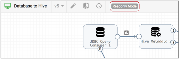 - When viewing a published pipeline or pipeline fragment, Pipeline Designer displays the pipeline or fragment in read only mode. The mode displays above the canvas as shown: