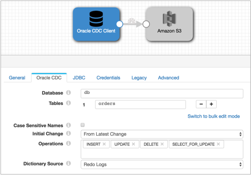 The Oracle CDC Client processes change data capture (CDC) information provided by Oracle LogMiner redo logs. Use Oracle CDC Client to process data from Oracle 11g or 12c.