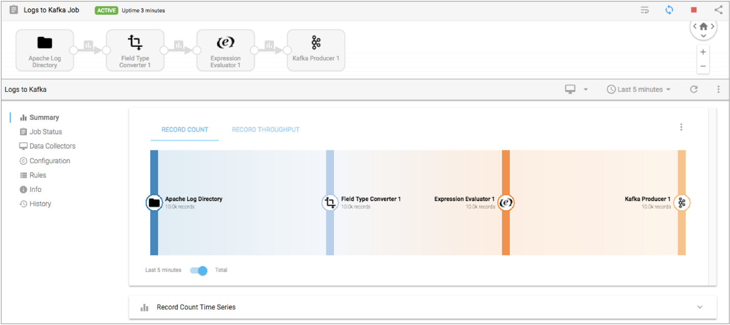 When a Control Hub job includes a pipeline that is configured to write statistics, you can view the statistics and metrics when you monitor the job in Control Hub: