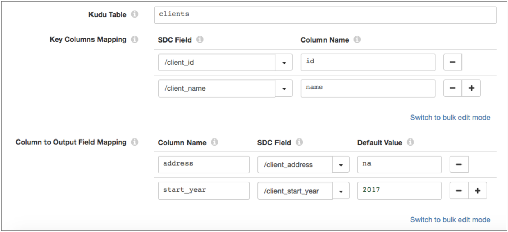For example, you can configure the processor to use a department_ID field as the primary key column to look up department name values in a Kudu table, and pass the values to a new department_name output field.
