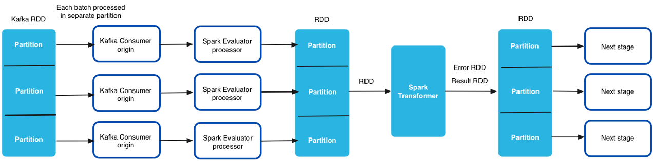 When you use the Spark Evaluator in a standalone pipeline, define a parallelism value for the Spark Evaluator. The Spark application creates this number of partitions for each batch of records. The Spark Transformer processes each partition in parallel, and then returns the results and errors back to the pipeline.
