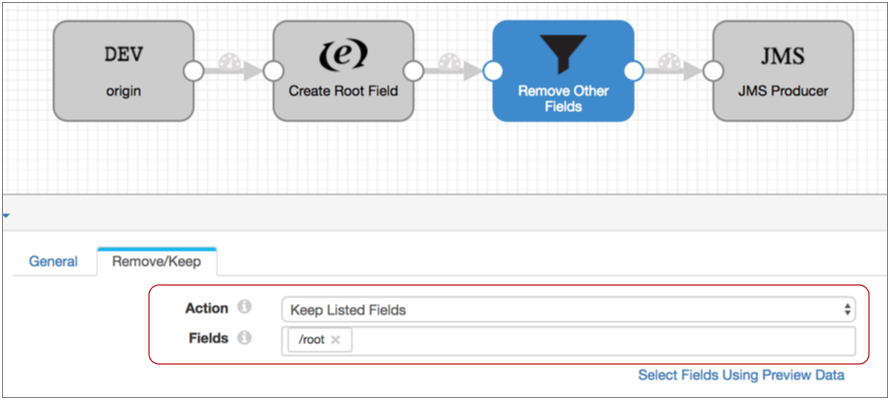 Then, you can use the Field Remover to keep only the root field, which removes all other fields: