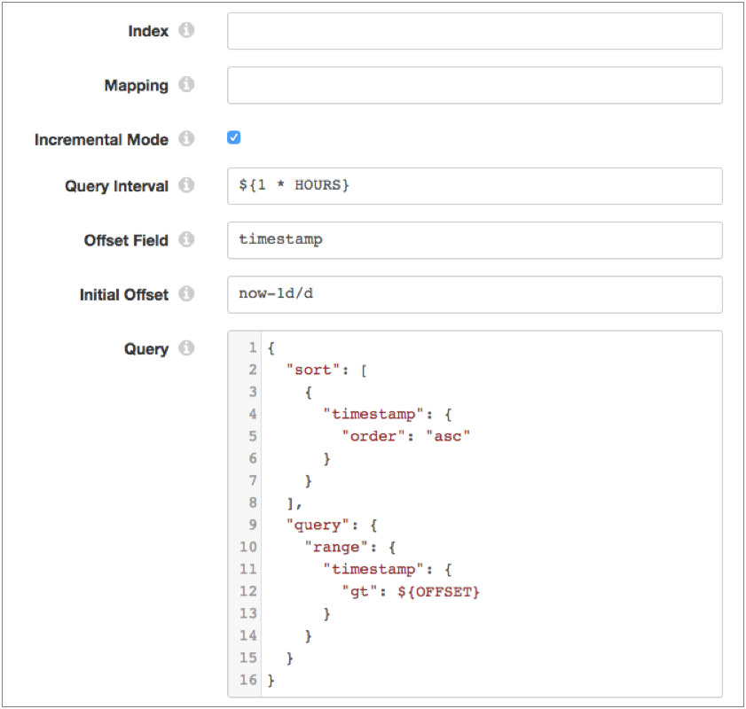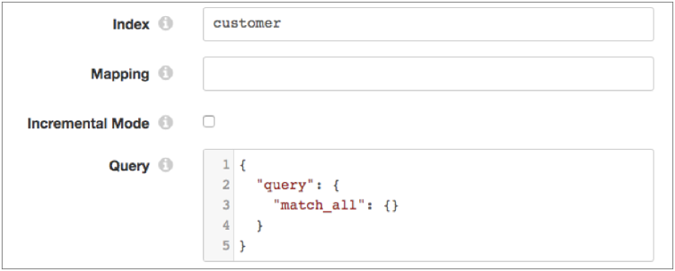 }You can optionally specify an Elasticsearch index or mapping type to define the scope of the query in either batch or incremental mode.