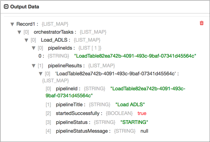 The Start Pipelines origin creates an orchestration record that includes information about the pipelines that it starts.