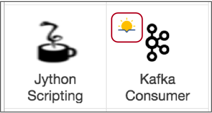 For example, the Kafka Consumer origin is deprecated because you can use the more powerful Kafka Multitopic Consumer origin. In the stage library panel, the sunset icon indicates that the Kafka Consumer origin is deprecated: