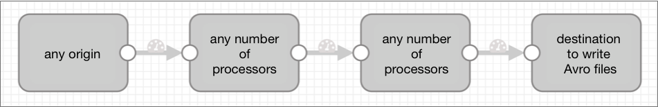 The Write Avro pipeline includes any origin, any number of processors, and an Avro-enabled file-based destination, as follows: