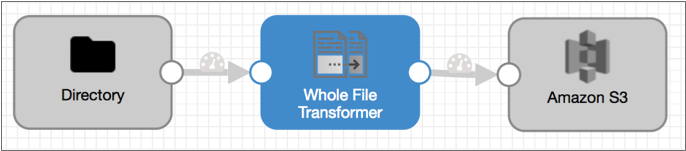 then streams from the Whole File Transformer to the Amazon S3 location defined in the