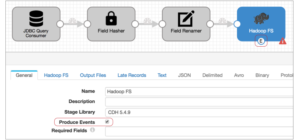 Note: If you prefer, instead of using the Hadoop FS destination with the HDFS File Metadata executor, you can use the Local FS destination with the HDFS File Metadata executor or the MapR FS destination with the MapR FS File Metadata executor.
