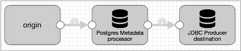 To do this, you start with the JDBC Multitable Consumer origin and connect it to the PostgreSQL Metadata processor. Then, use a JDBC Producer destination to write to PostgreSQL. The resulting pipeline looks like this: