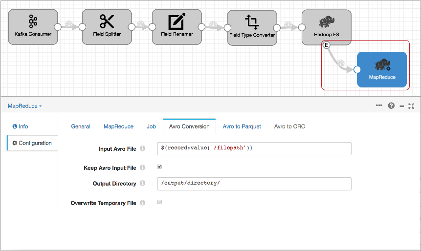 - Configure the MapReduce executor to run a job that converts the completed Avro